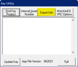 - Select Export Info …creates a file listing the key serial number and software the key supports